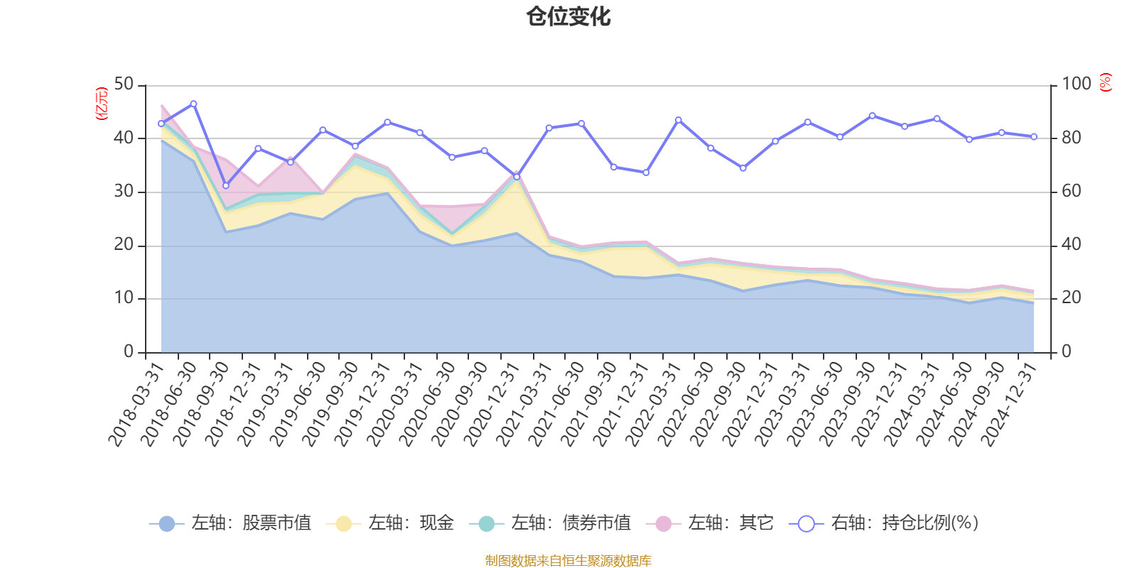 据定期报告数据统计,近三年平均股票仓位为81.82%,同类平均为79.89%。2018年上半年末基金达到93.03%的最高仓位,2018年三季度末最低,为62.42%。